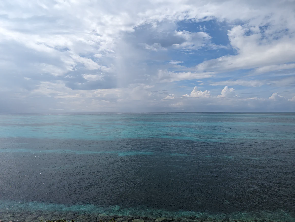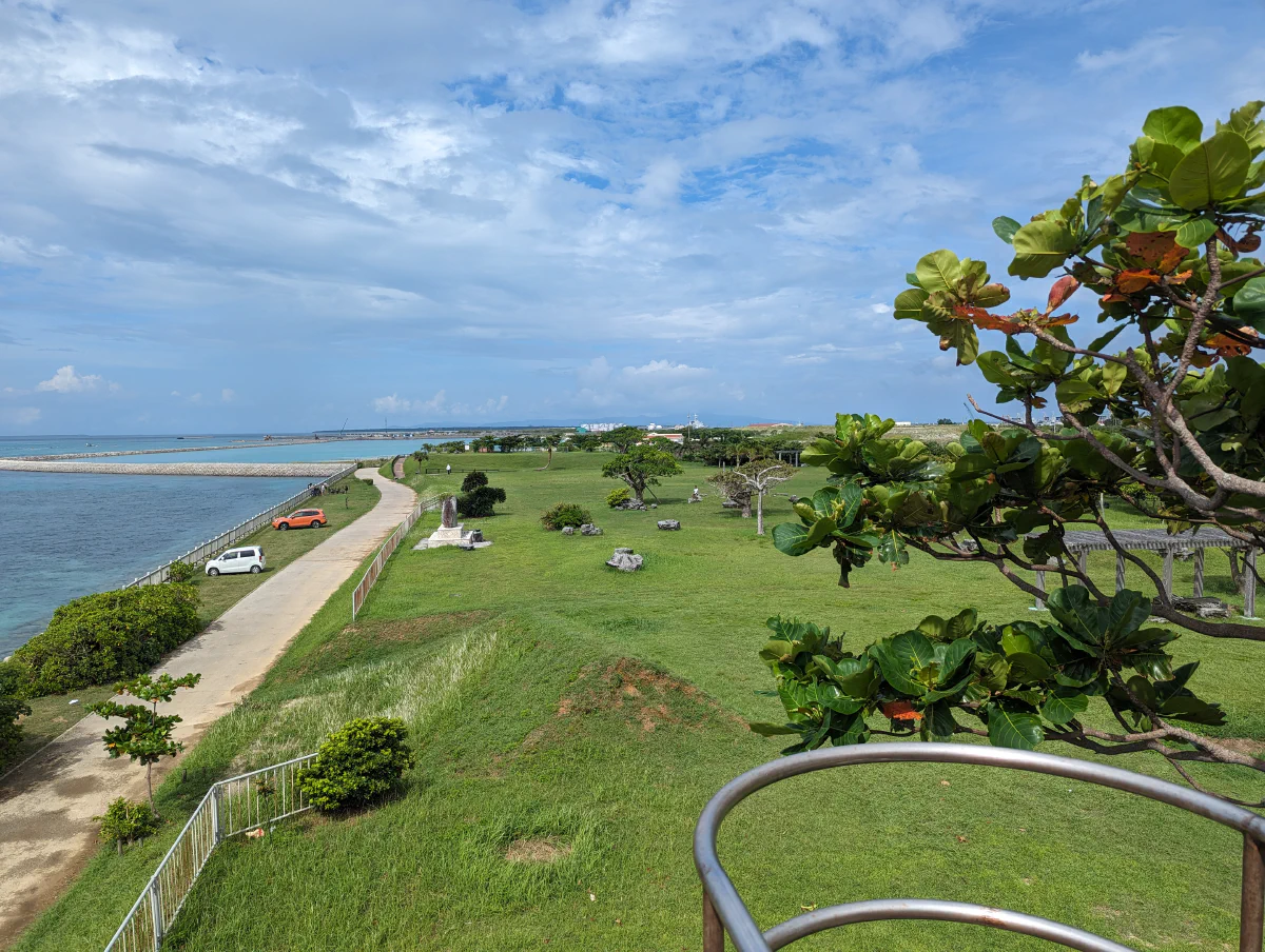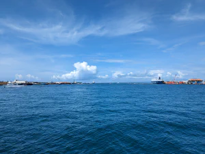 Рядом с портом по понятным причинам купаться не стоит. Есть пляж Minaminuhamacho Jinko Beach, в пешей доступности от него, но он довольно скучный т.к. отделен от океана и сноркать нельзя. За полчаса на автобусе от причала можно доехать до пляжей Maesato(относится к отелю ANA Resort) или дикого Shiraho c большим разнообразием кораллов.