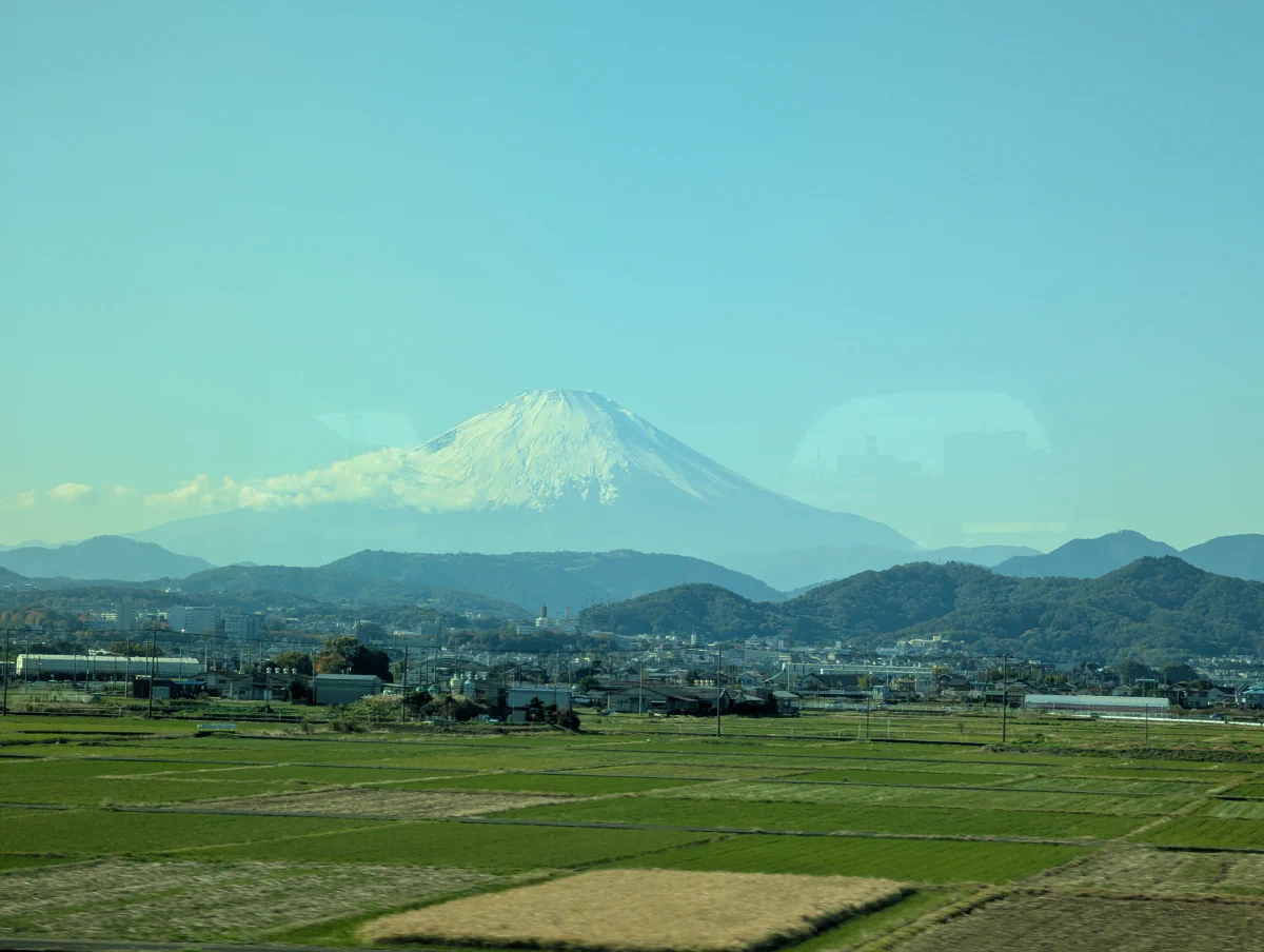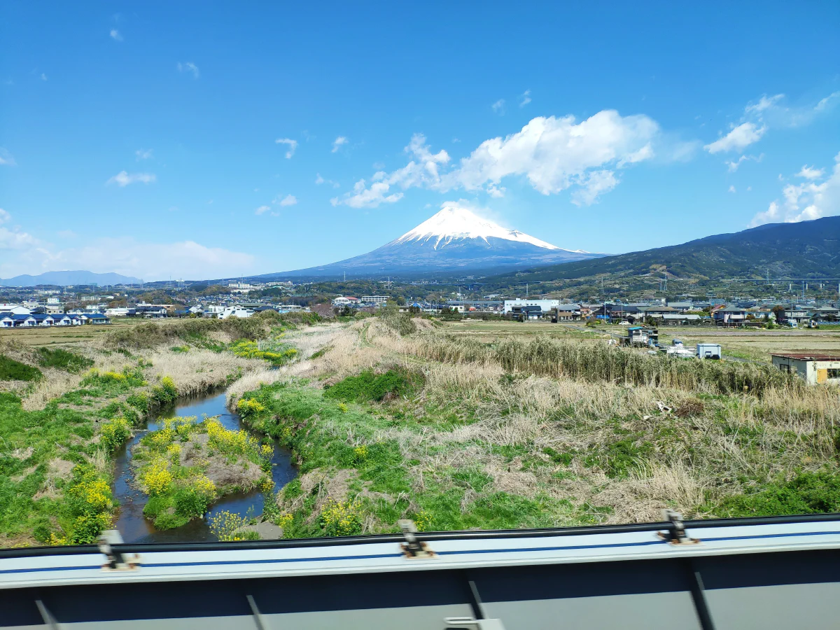 Самую известную гору Японии можно увидеть с довольно большого расстояния. Оценить вероятность чистого вида можно на отдельном сайте . Но с учетом динамики погоды, через час может уже всё измениться. Если едете на синкансене из Токио в Нагою\Киото\Осаку, то минут 10 обычно тоже будет на просмотр. Аналогично большая вероятность увидеть и с самолёта, но стоит заранее посмотреть маршруты вашего рейса на сайте flightradar