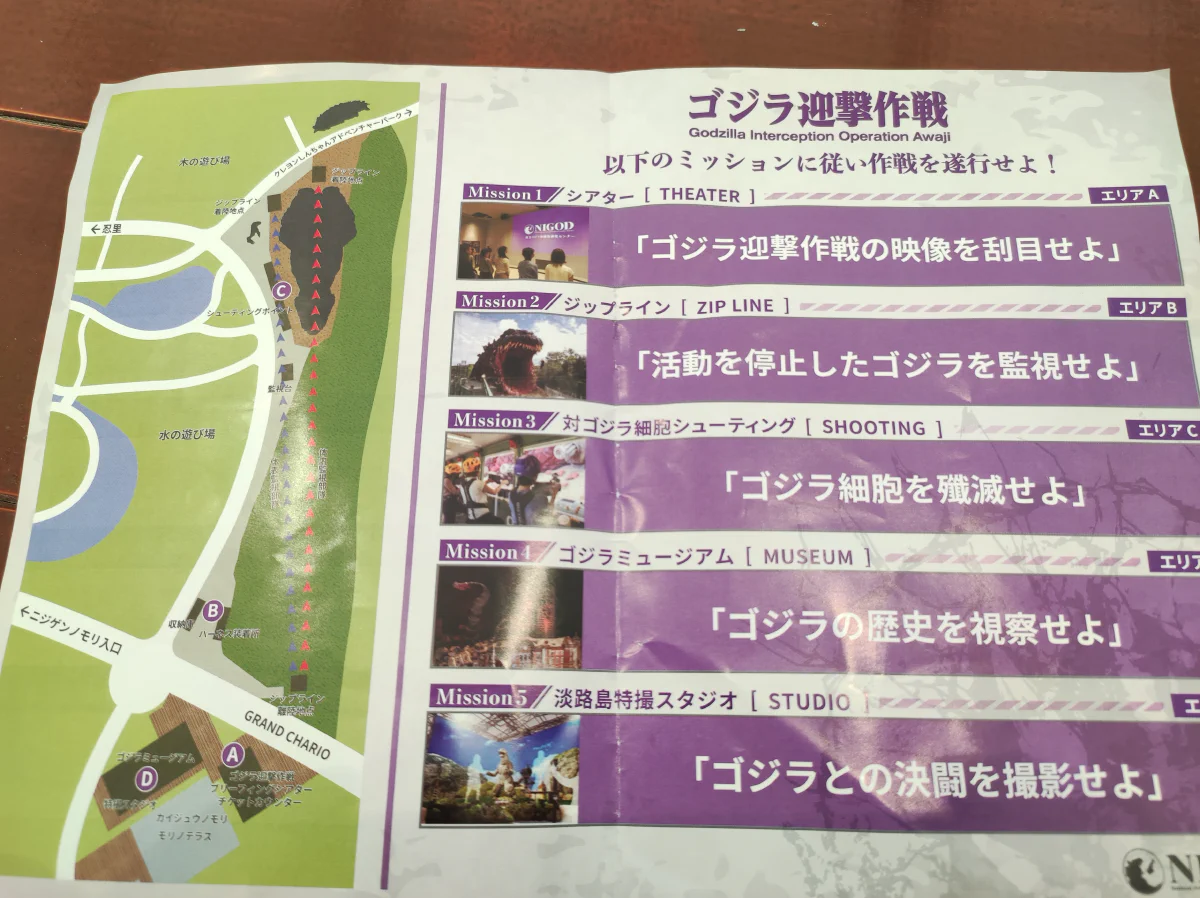 Начинается с просмотра фильма о том как Годзилла издревле была на этой территории и вот сейчас силы JSDF охраняют её сон. Далее можно на zipline прокатиться в пасть монстру, пострелять по целям и пройтись по музею. В нём собраны модели из разных фильмов, раскадровки и возможность записать мини-ролик на хромакее. Закончить обзор можно тематической едой и сувенирным магазином.