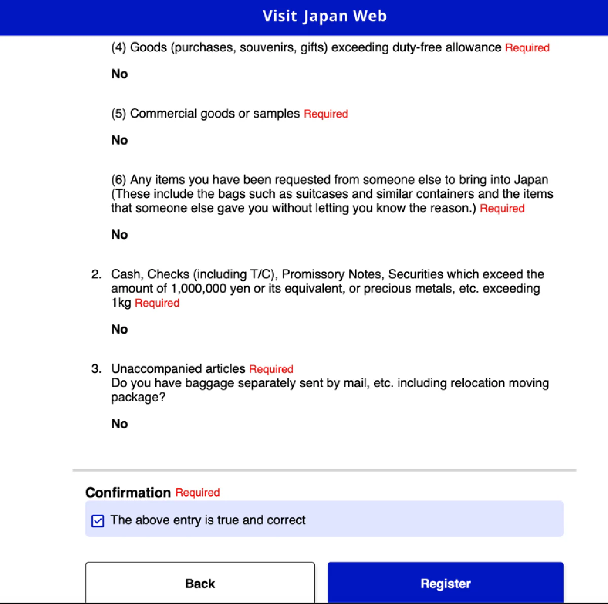 В опроснике указываете NO на вопросы, что вы не привлекались, не замечены и не ввозите список запрещенного или выше лимита и подтверждаете верность всего вышеуказанного.